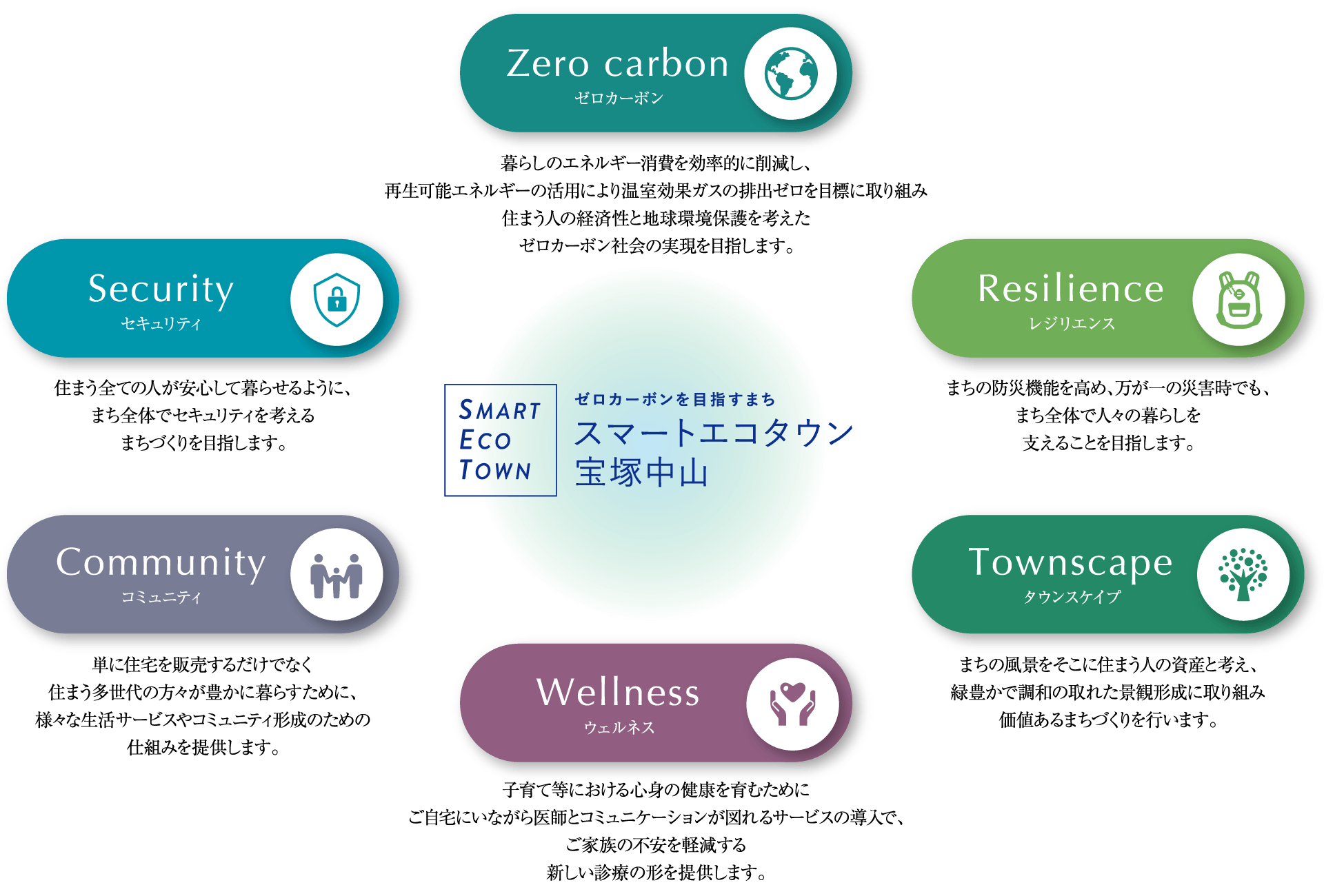 全邸オール電化と太陽光パネルを搭載、高断熱の仕様を標準とし、Nearly ZEH以上の性能を取得。さらに全邸宅配ボックスの設置による再配達の低減など、ゼロカーボン社会の実現に貢献できる「まちづくり」を目指します。